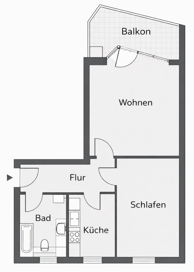 Der Wohn- und Essbereich ist freundlich geschnitten und bildet den Mittelpunkt der Wohnung. Von hier aus gelangen Sie auf den Balkon mit Südost-Ausrichtung – perfekt, um den Tag mit Morgen- und Vormittagssonne zu beginnen. Das Schlafzimmer bietet ausreichend Platz für ein Doppelbett sowie ergänzendes Mobiliar.